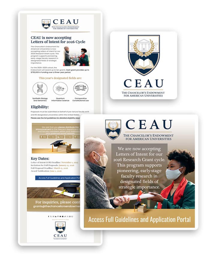 Our designers craft polished, mission-focused marketing materials that establish your non-profit as a credible, trustworthy leader in your field, helping you secure the support you need to grow. We help you save time and connect with more donors through professionally designed emails, social media, videos, and logos that are crafted to grow your audience and amplify your impact.