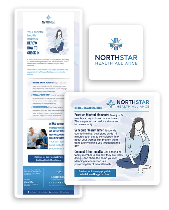 Stay connected with your community every day. We create eye-catching, shareable graphics for posts, stories, and banners that keep your cause top-of-mind and drive supporter engagement online. Learn more.
