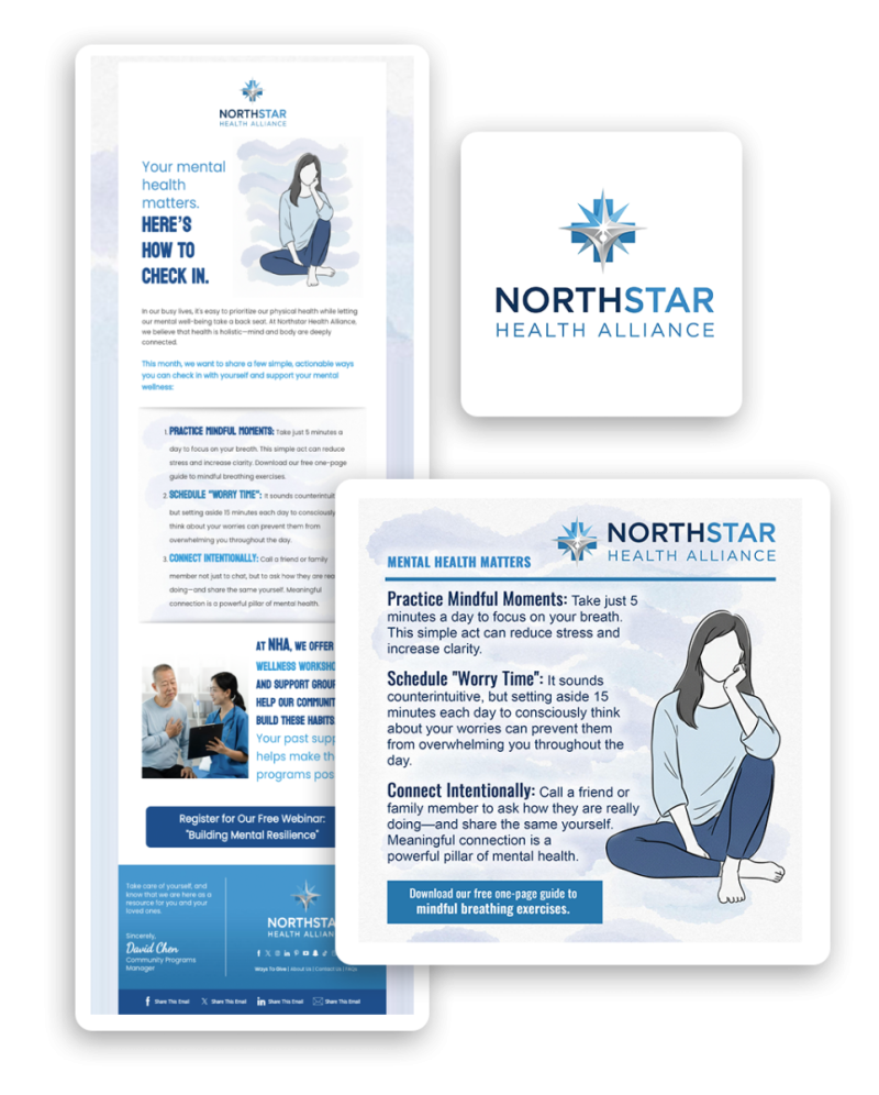 Stay connected with your community every day. We create eye-catching, shareable graphics for posts, stories, and banners that keep your cause top-of-mind and drive supporter engagement online. Learn more.